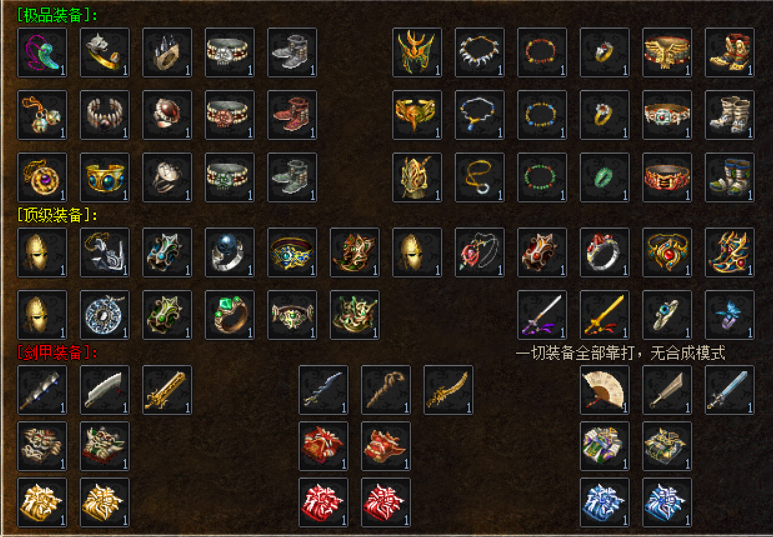 装备级别:新手,沃玛,祖玛,圣战,赤金,黄金!